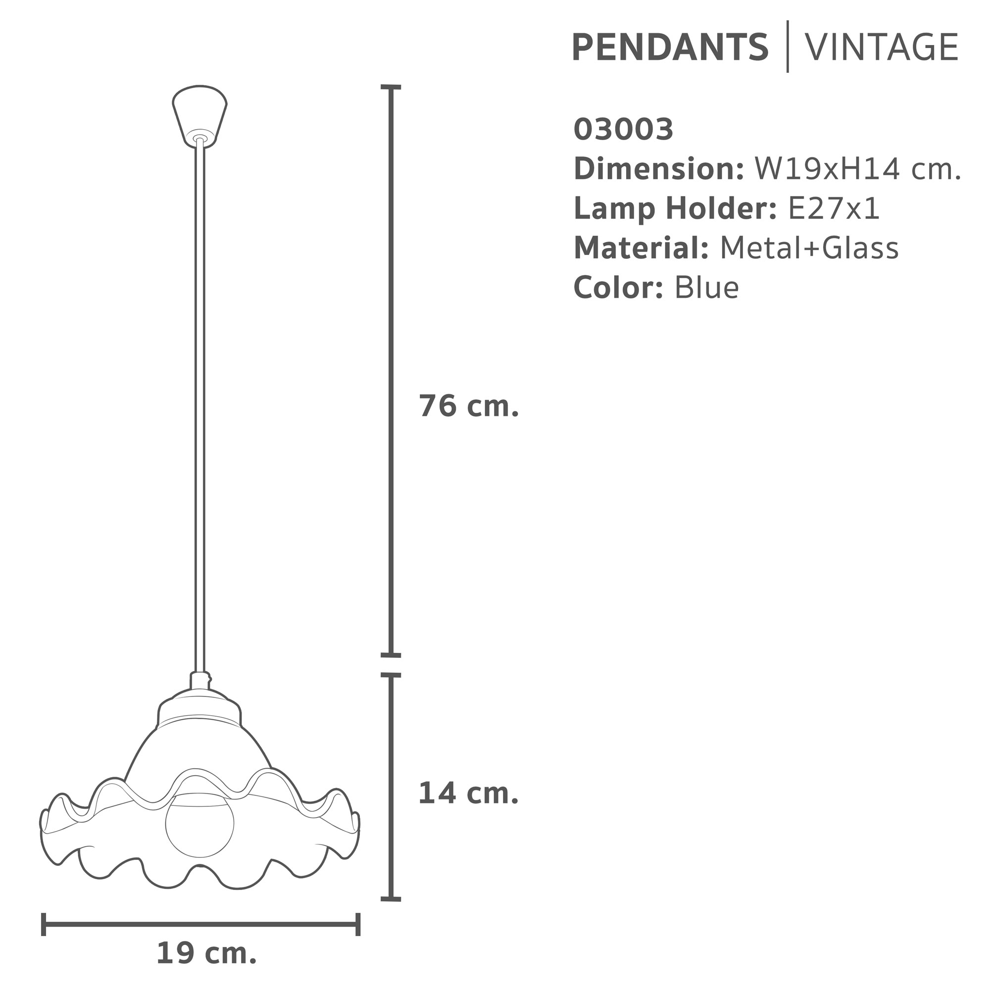 ชื่อสินค้า : โคมห้อย 003/067 โป๊ะจีบ น้ำเงิน (E27x1)