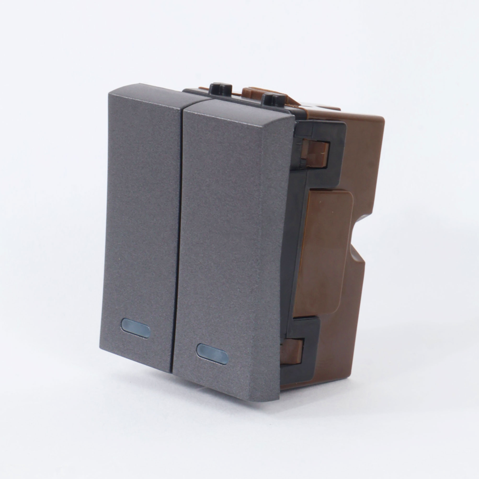 ชื่อสินค้า : สวิตช์ฝังคู่ 1.5 ช่อง พรายน้ำ เทาดำ Chang iModern