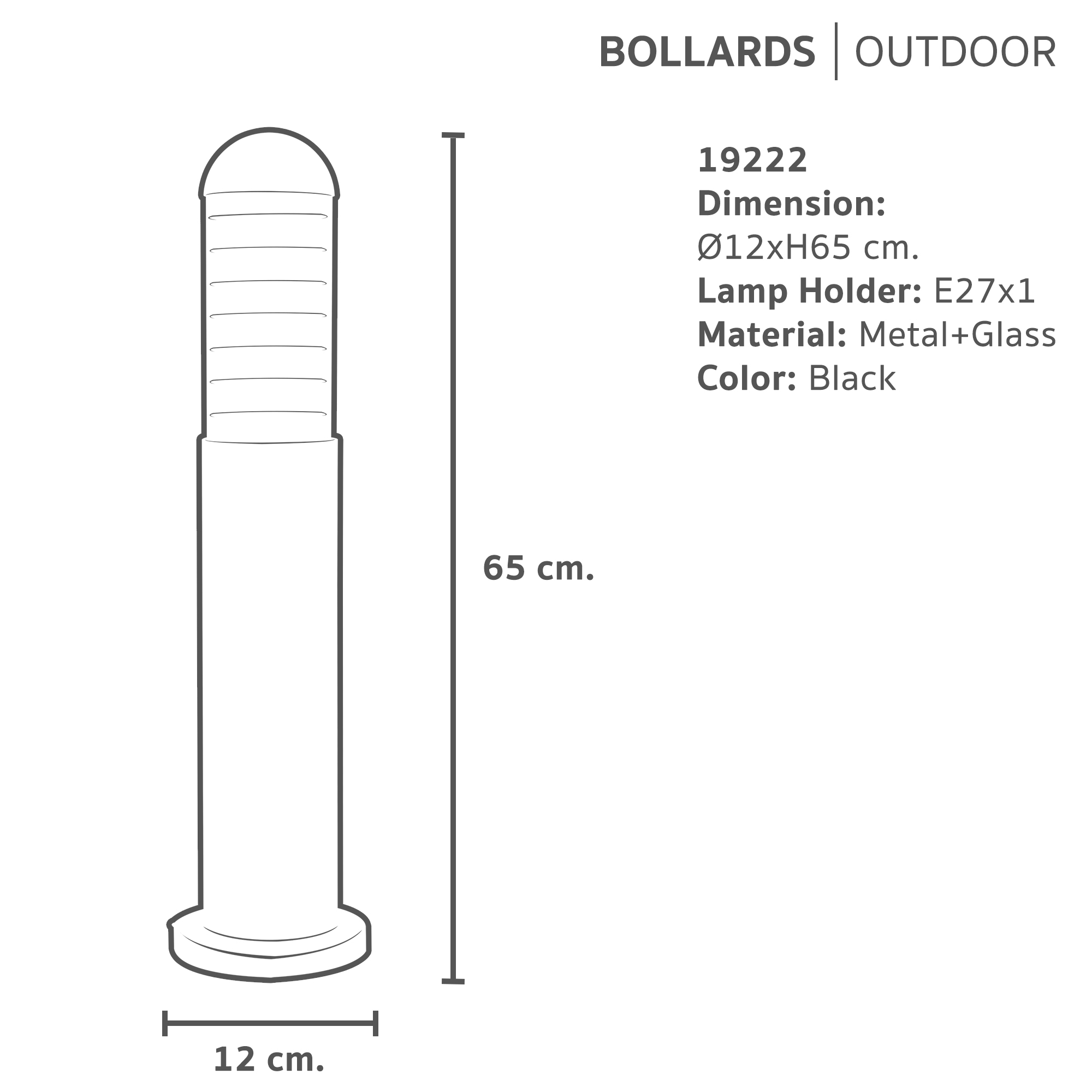 ชื่อสินค้า : โคมสนาม 1007/216 กลม 11cm. แก้วใส มีReflect หัวนูน ดำ (65cm.) (E27x1)