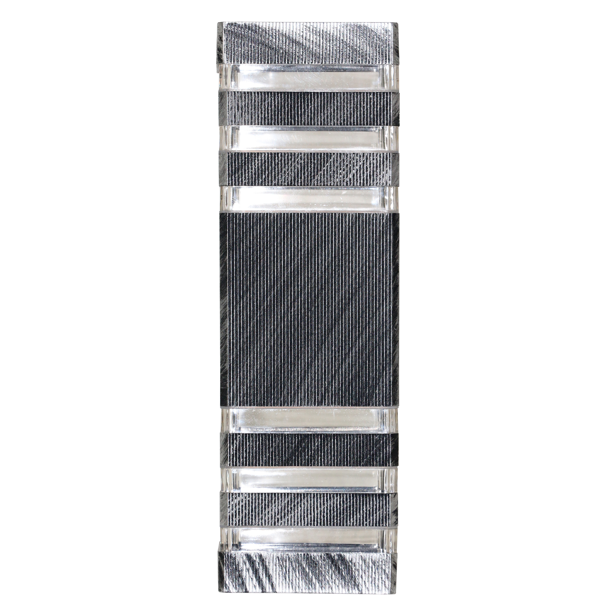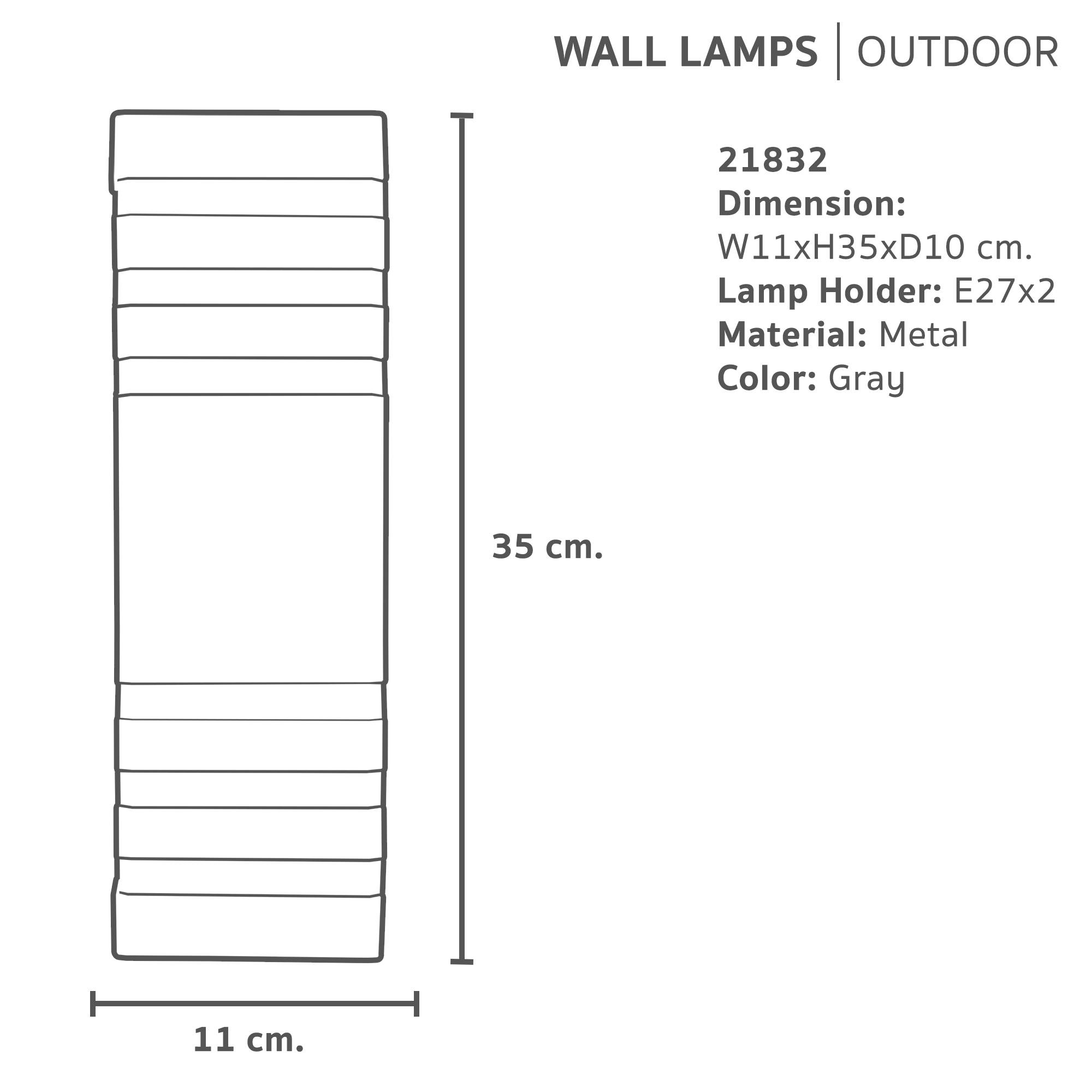 ชื่อสินค้า : โคมกิ่งนอก 1026/010 สี่เหลี่ยม 11cm. ส่องสองทาง มีแถบ3ช่อง PVC ใสบน-ล่าง เงินปัดดำ ก.11xย.10xส.35cm. (E27x2)