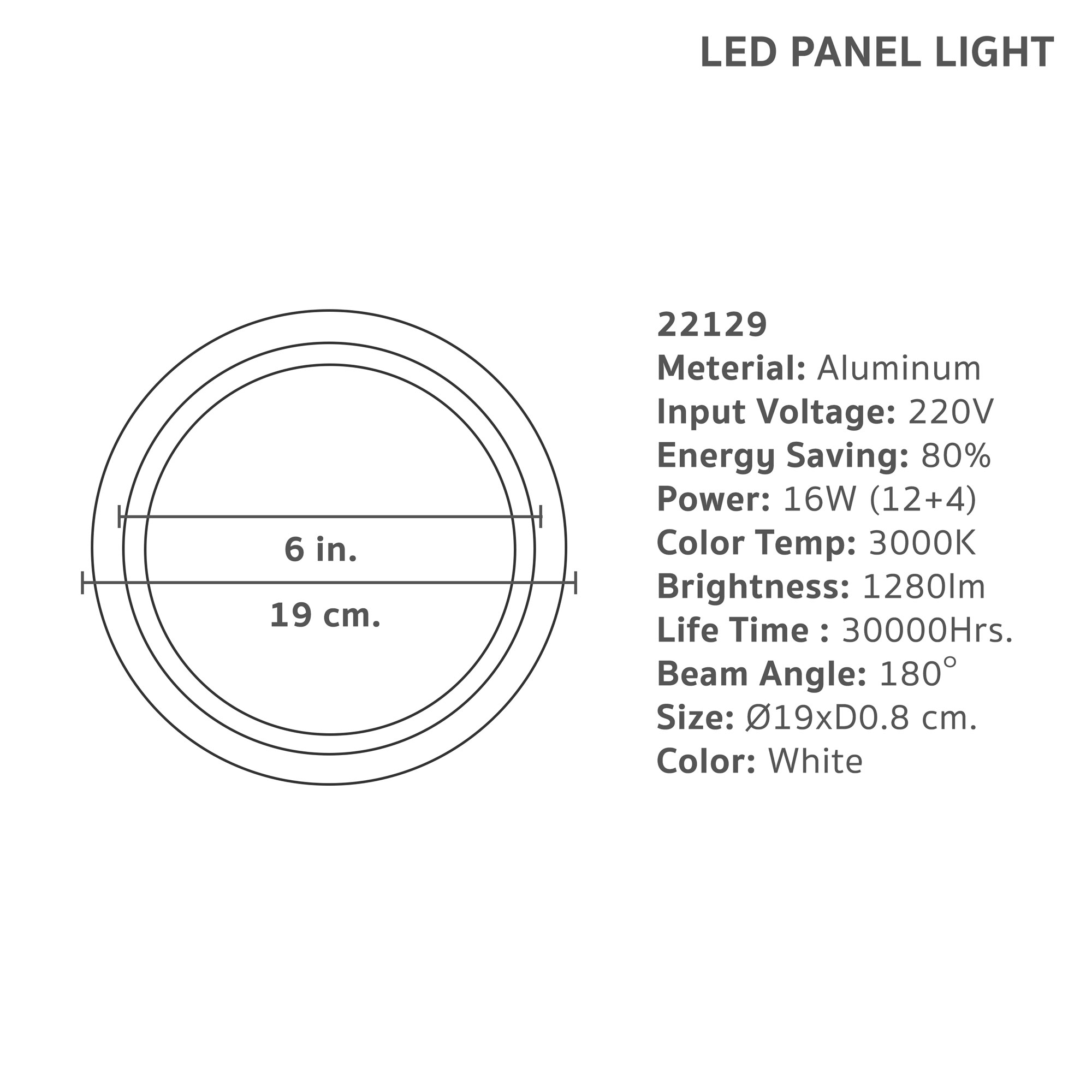 - โคมดาวน์ไลท์ LED 013/053 12+4W DL/WW 6" กลม ขาว Iwachi/Bewon