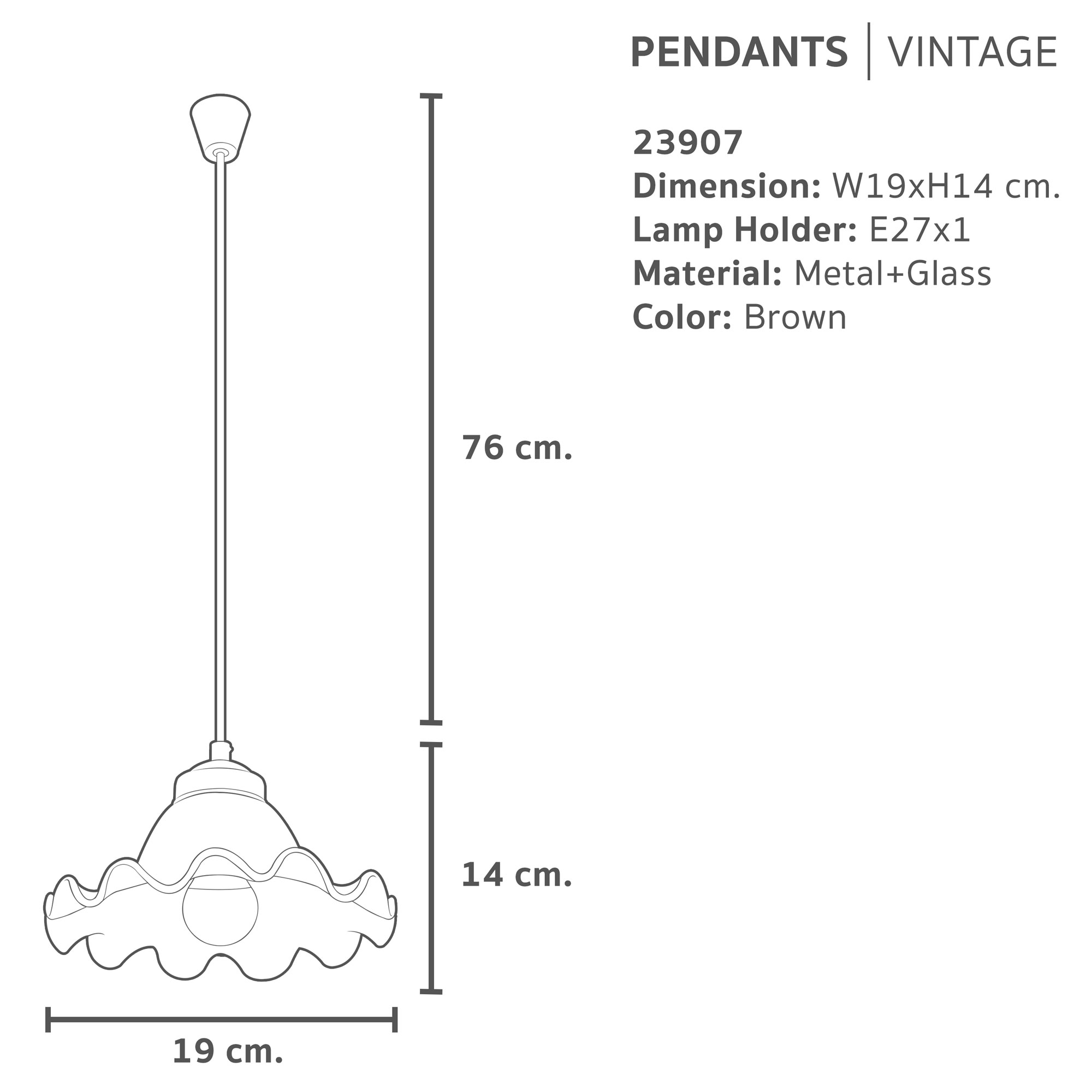 ชื่อสินค้า : โคมห้อย 003/433 โป๊ะจีบ สีชา (E27x1)