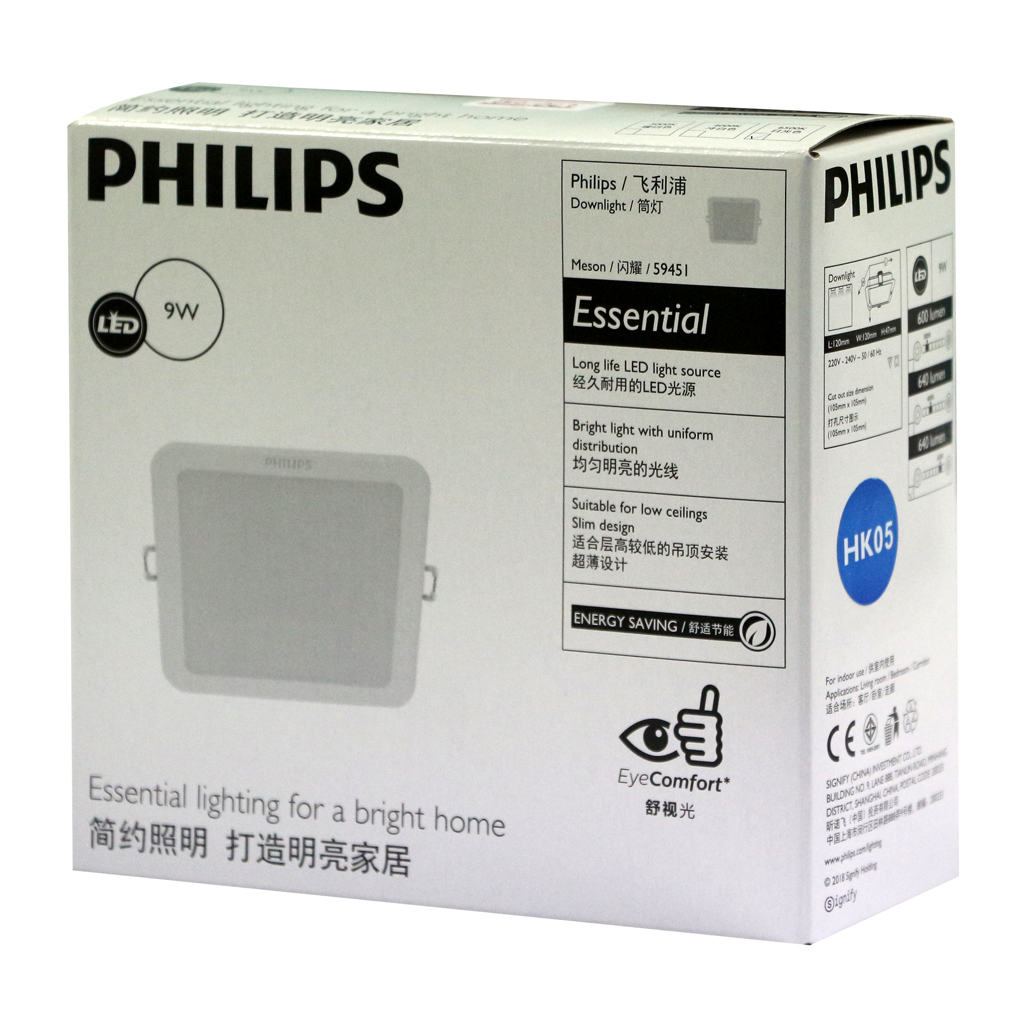 ชื่อสินค้า : โคมดาวน์ไลท์ LED 359/043 9W DL 4" เหลี่ยม ขาว Philips Meson