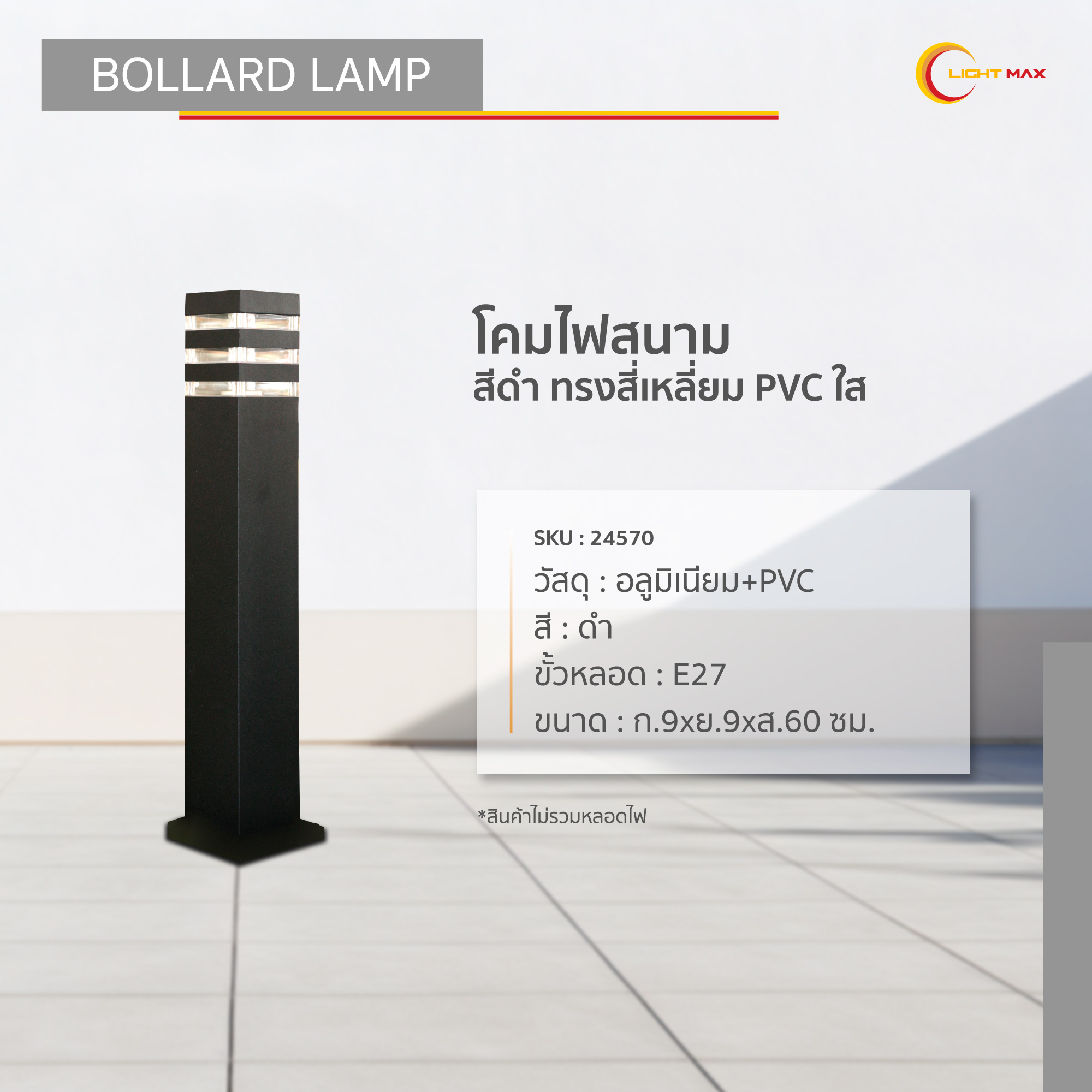 ชื่อสินค้า : โคมสนาม 1026/045 สี่เหลี่ยม 9x9cm 3ช่องPVCใส ดำ (60cm.) (E27x1)
