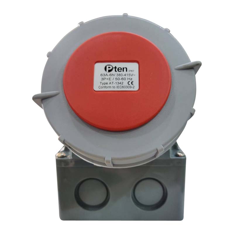 - ปลั๊กเพาเวอร์ตัวเมียผนังลอยกันน้ำ 3P + E 63A Pten AT-1342