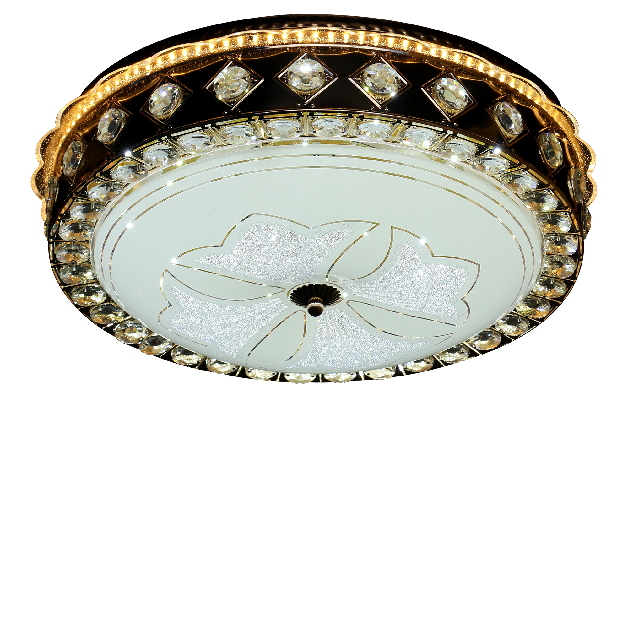 ชื่อสินค้า : โคมเพดาน LED 1615/008 80W DL/WW/CW คริสตัล กลม ลายดอกไม้สี่กลีบ (48cm.)