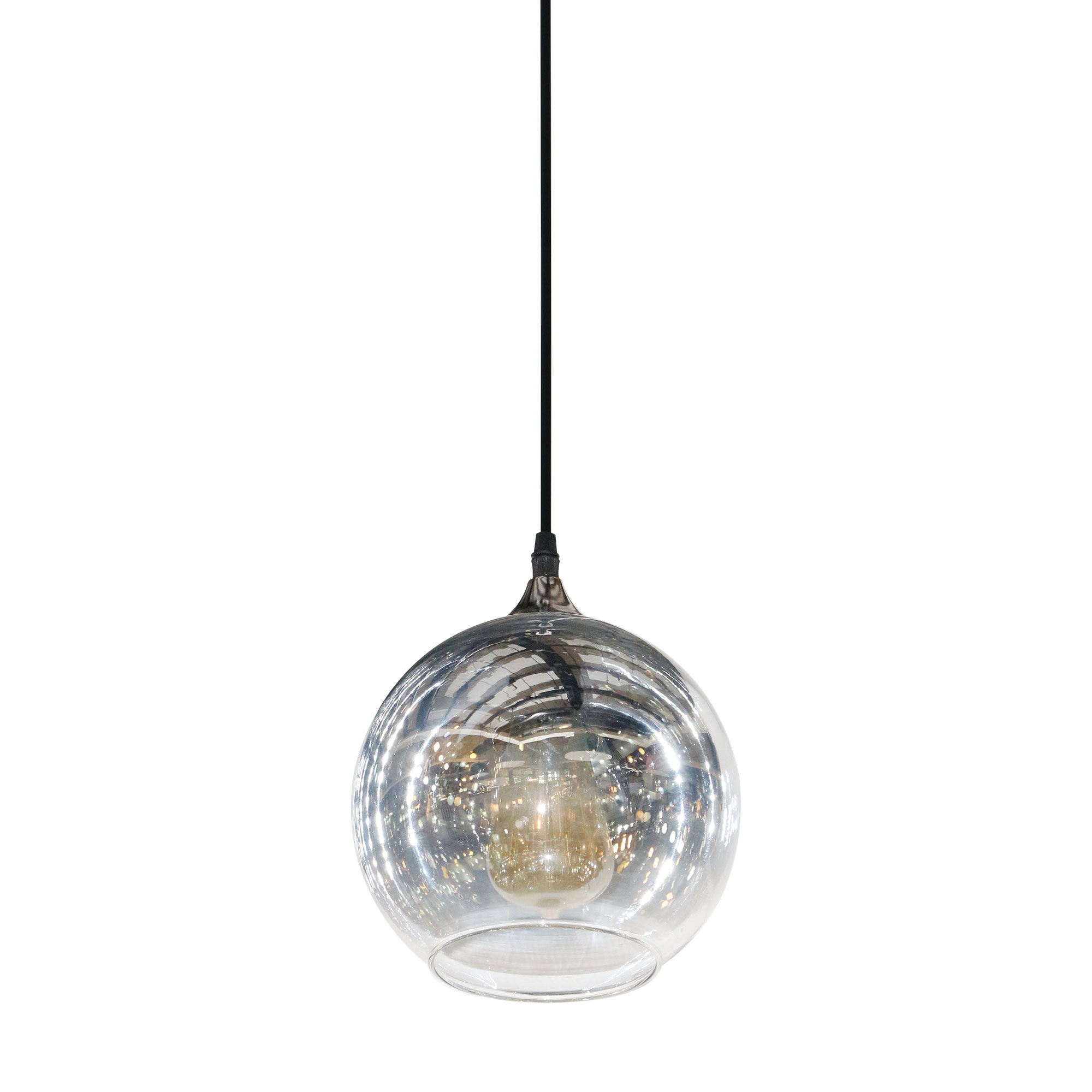 แชทข้อมูลสินค้าโคมห้อย 123/179 แก้วกลมมีปาก 8.5" เงิน-ใส ขั้วจุกเงิน (E27x1)