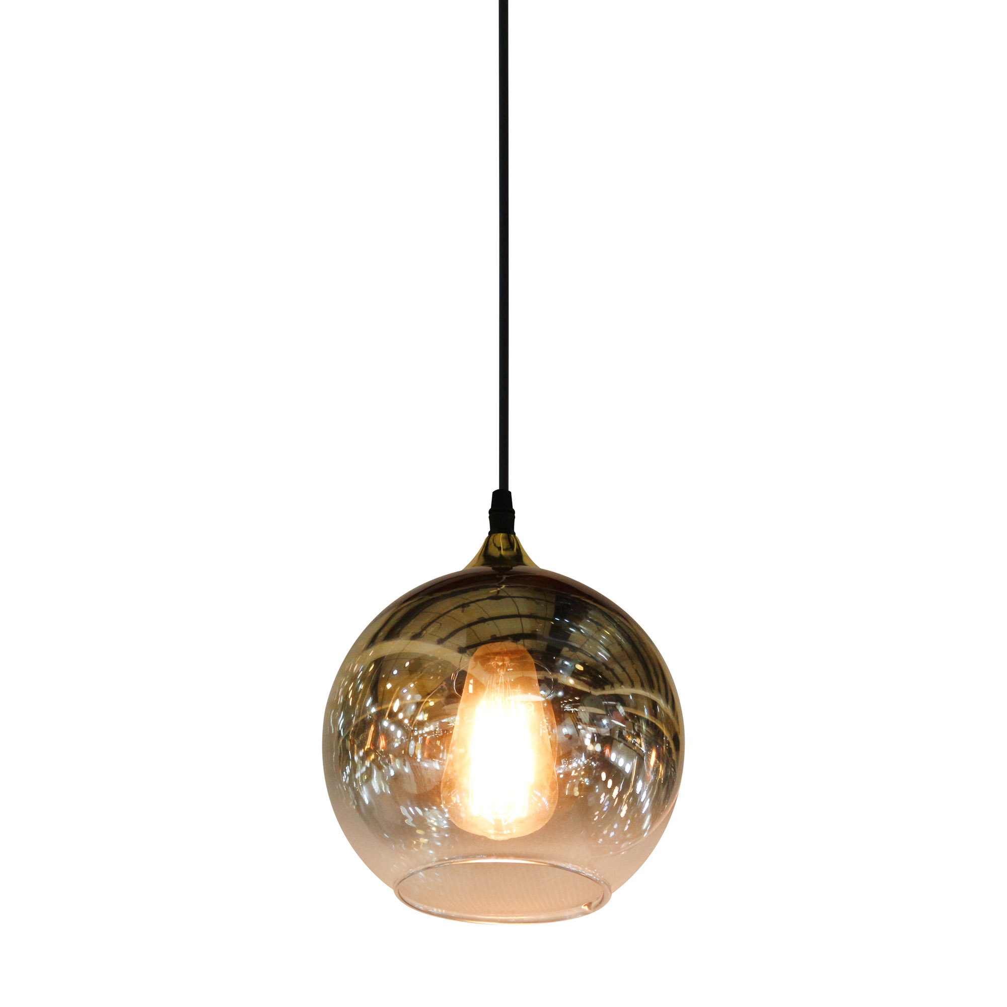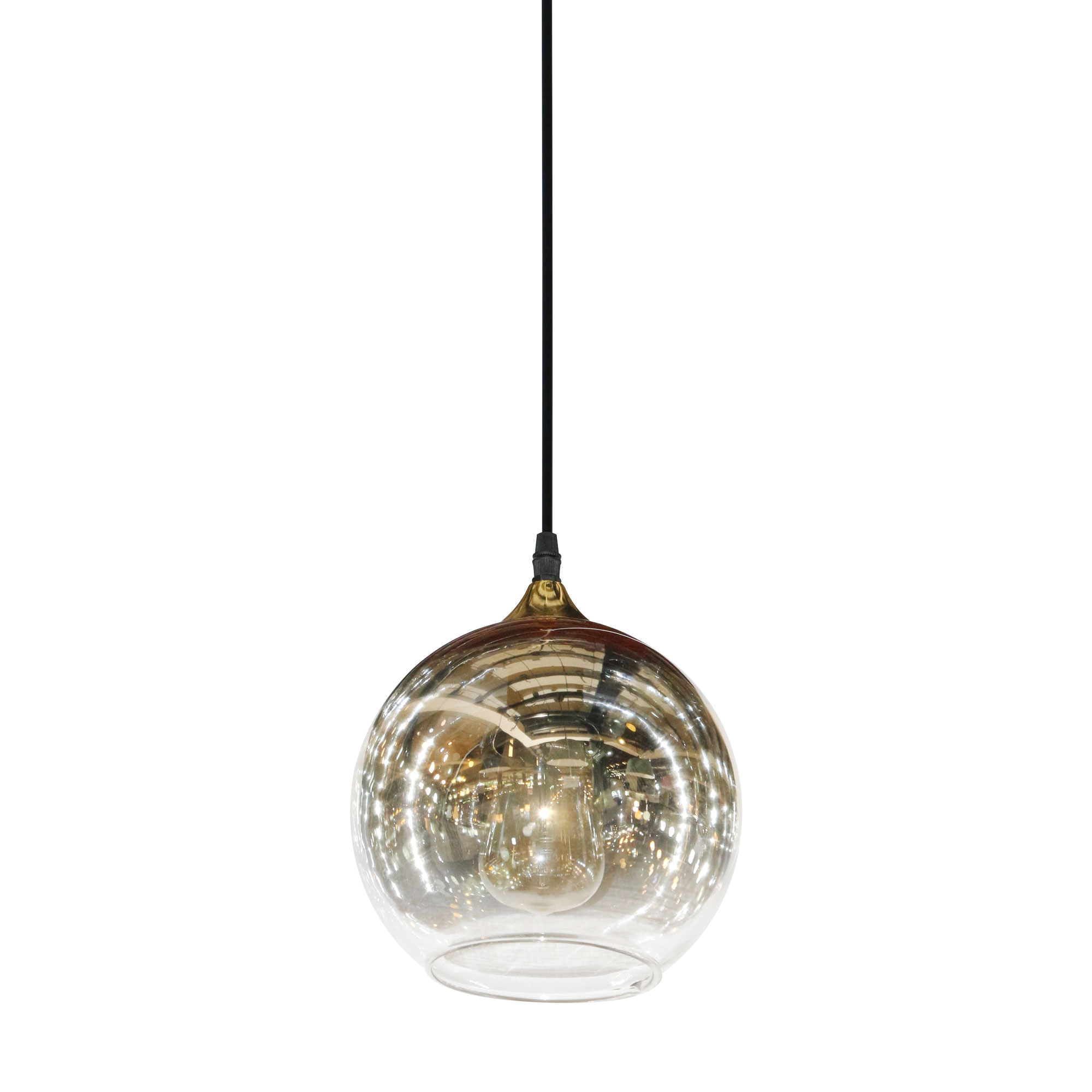 แชทข้อมูลสินค้าโคมห้อย 123/180 แก้วกลมมีปาก 8.5" ทอง-ใส ขั้วจุกทอง (E27x1)