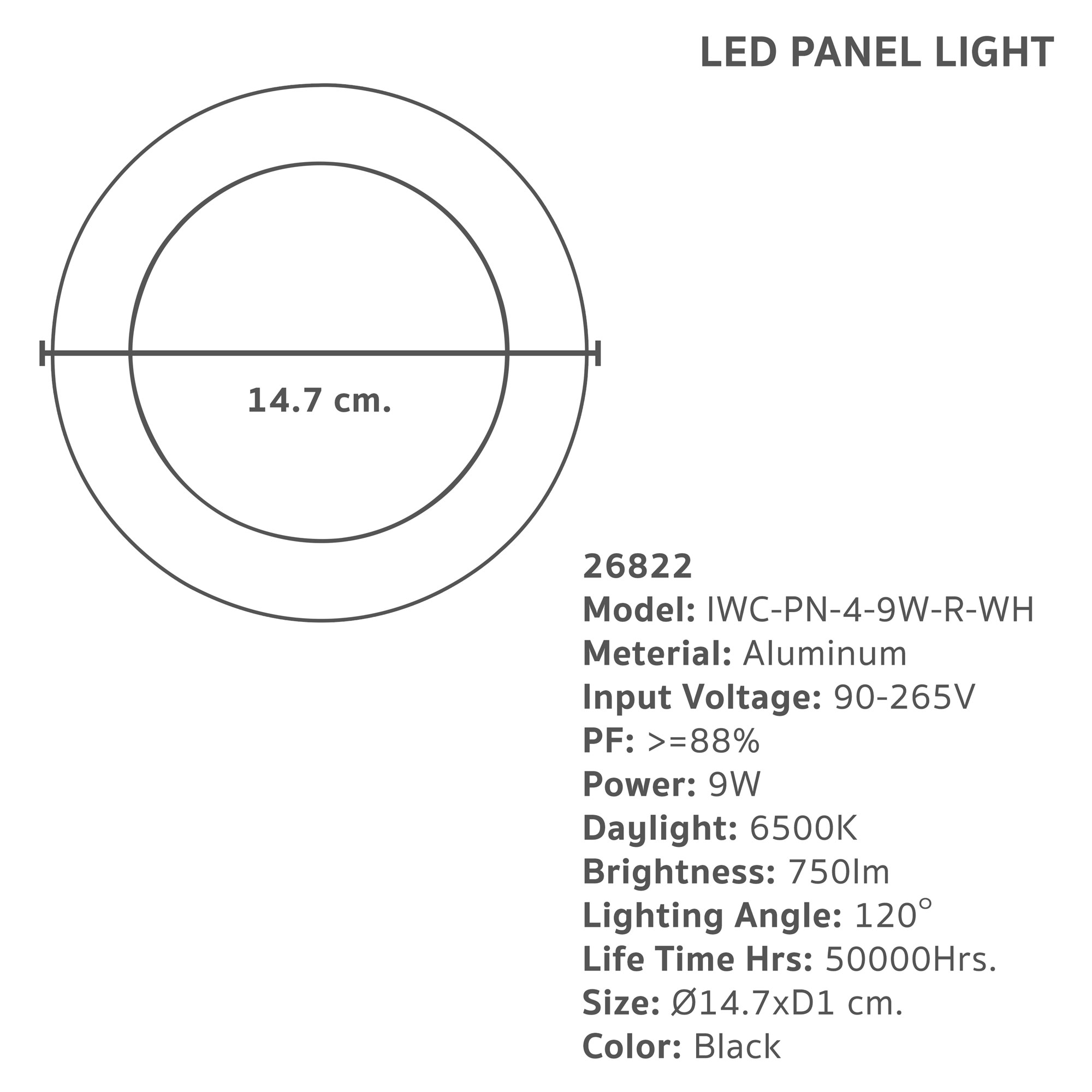 ชื่อสินค้า : โคมดาวน์ไลท์ LED 1615/020 9W DL 4" กลม ดำ Iwachi