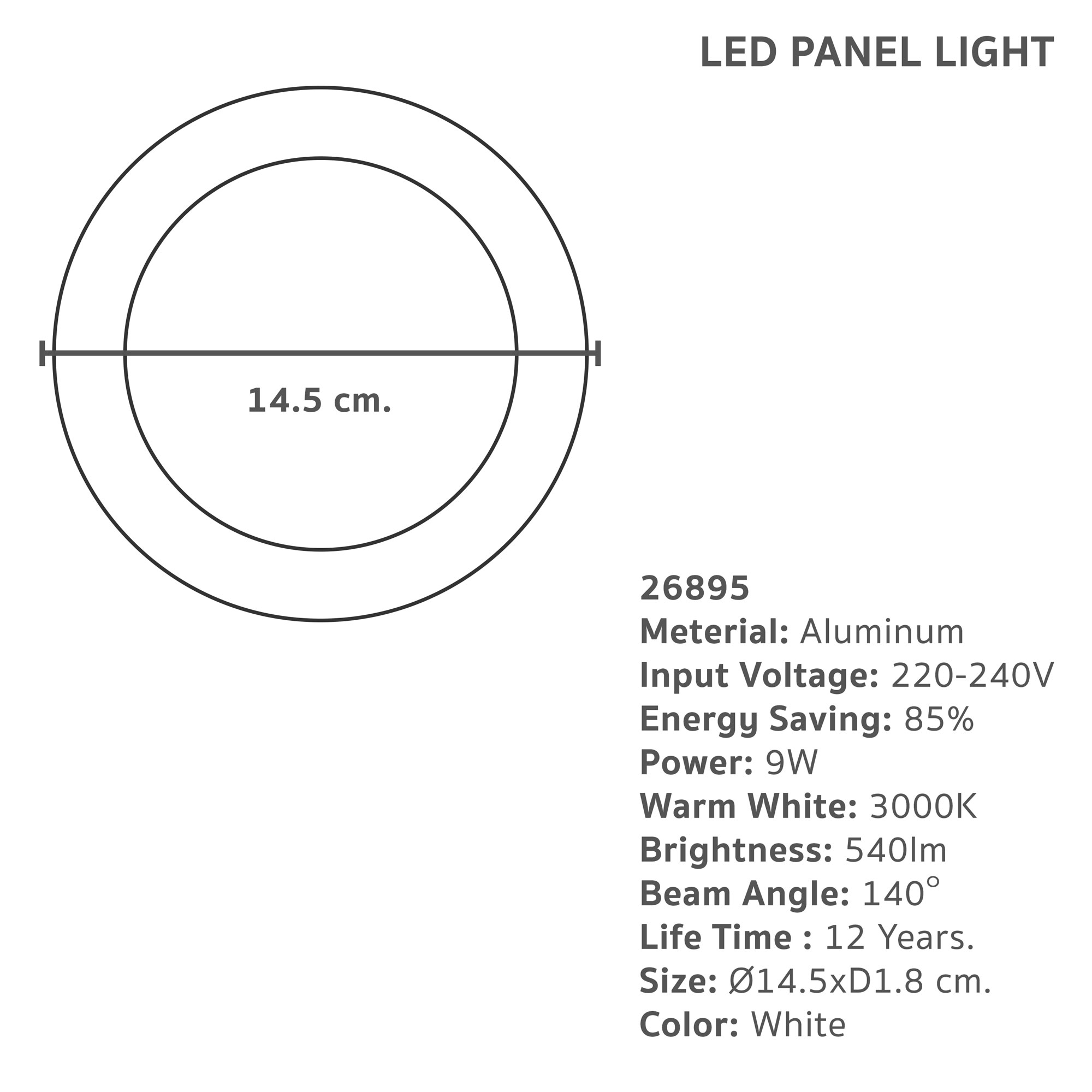 รหัสสินค้า : 26895 ★ ชุดโคม LED Downlight Lamptan ★ หลอด LED ติดตั้งในตัว ง่ายต่อการใช้งาน ★ เหมาะสำหรับใช้ติดตั้งฝังบนฝ้าหรือเพดาน ★ ให้แสงสว่างทั่วถึง เปิดแล้วสว่างทันที ★ น้ำหนักเบา รูปทรงสวยงามทันสมัย ★ ช่วยประหยัดพลังงานได้มากถึง 85% ★ มอก.1955-2551 ★ ประเภท: โคมไฟดาวน์ไลท์ ★ รูปแบบโคม: กลม ★ ลักษณะการติดตั้ง: ฝัง ★ วัสดุ: อลูมิเนียม ★ สี: ขาว ★ แสง: วอร์ม (WW) ★ กำลังไฟ(วัตต์): 9W ★ ค่าความสว่าง(ลูเมน): 540lm ★ ค่าอุณหภูมิแสง(เคลวิน): 3000K ★ อายุการใช้งาน(ปี): 12 ปี ★ ขนาด: กว้าง 14.5 x ลึก 1.8 ซม. ★ เส้นผ่านศูนย์กลาง(นิ้ว): 5" ★ น้ำหนัก: 0.2 กก. คำแนะนำ ★ ควรศึกษาคู่มือวิธีการใช้งานก่อนทำการติดตั้งและใช้งาน ★ ควรระวังไฟฟ้าดูดไฟฟ้ารั่วหากประกอบ ติดตั้ง ไม่ถูกวิธี ★ ควรประกอบและติดตั้งอุปกรณ์ให้เรียบร้อยก่อนเปิดสวิทช์ใช้งาน ➽ หมายเหตุ: สีของผลิตภัณฑ์ที่แสดงในหน้าเว็บไซต์ อาจมีความแตกต่างกันเกิดจากการตั้งค่าของการแสดงผลแต่ละหน้าจอ