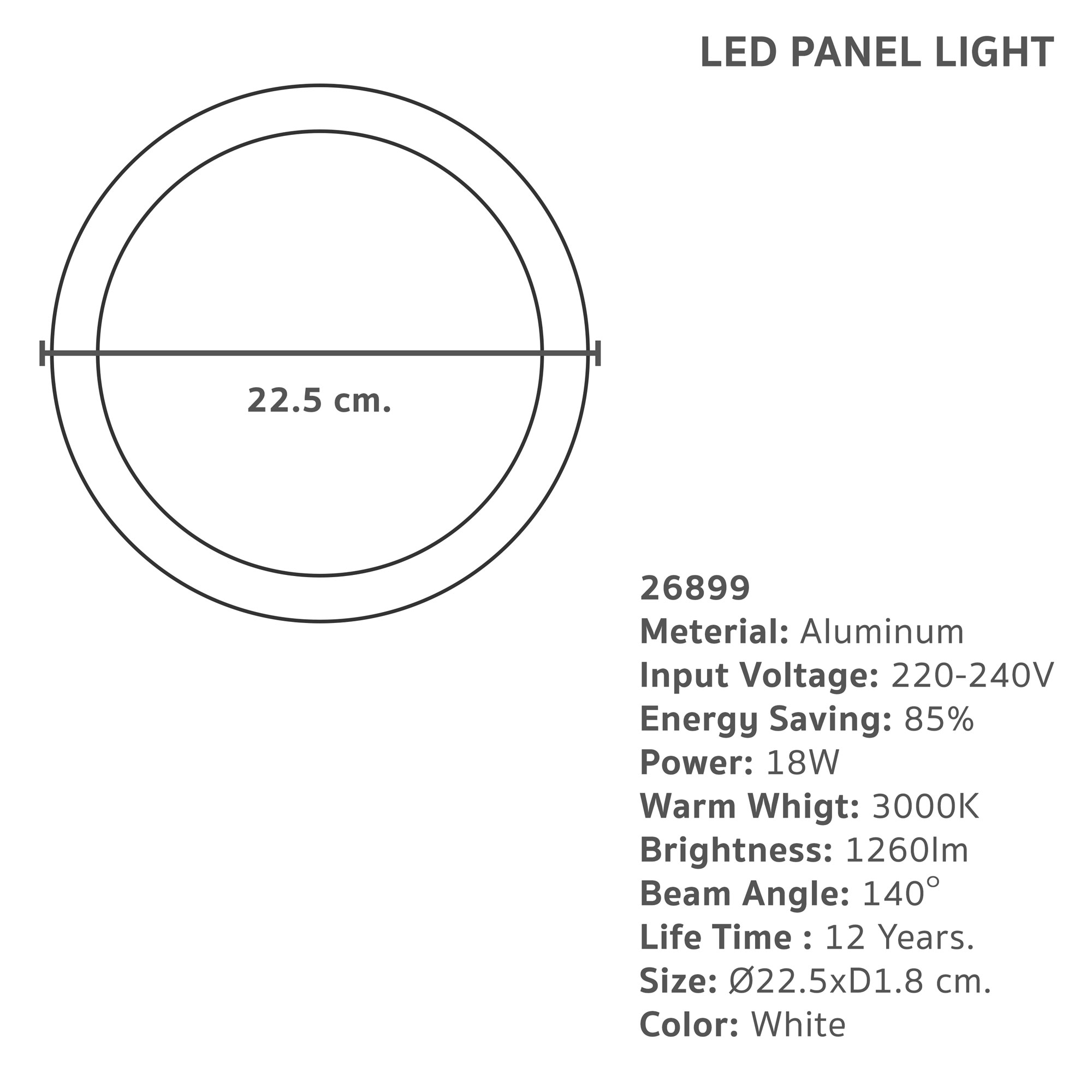 ชื่อสินค้า : โคมดาวน์ไลท์ LED 094/071 18W WW 8" กลม ขาว Lamptan Ultra Slim