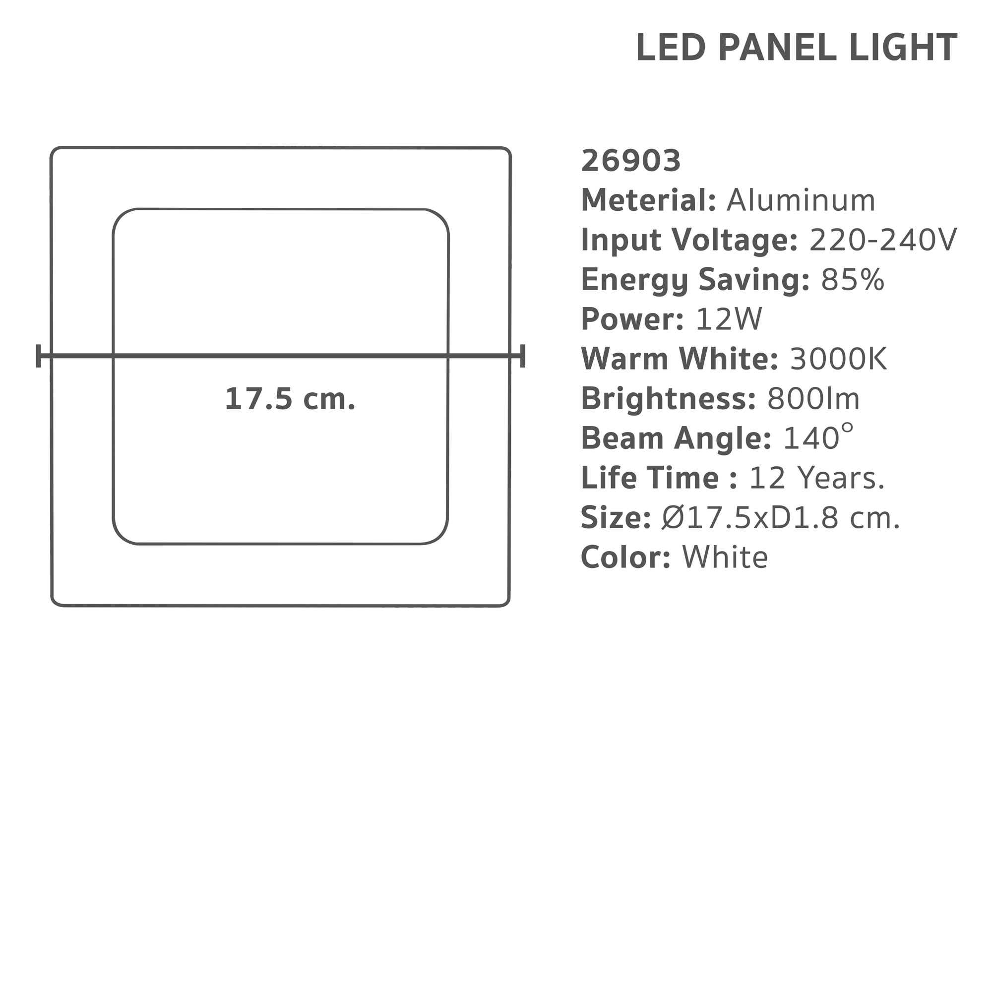 รหัสสินค้า : 26903 ★ ชุดโคม LED Downlight Lamptan ★ หลอด LED ติดตั้งในตัว ง่ายต่อการใช้งาน ★ เหมาะสำหรับใช้ติดตั้งฝังบนฝ้าหรือเพดาน ★ ให้แสงสว่างทั่วถึง เปิดแล้วสว่างทันที ★ น้ำหนักเบา รูปทรงสวยงามทันสมัย ★ ช่วยประหยัดพลังงานได้มากถึง 85% ★ มอก.1955-2551 ★ ประเภท: โคมไฟดาวน์ไลท์ ★ รูปแบบโคม: สี่เหลี่ยม ★ ลักษณะการติดตั้ง: ฝัง ★ วัสดุ: อลูมิเนียม ★ สี: ขาว ★ แสง: ขาว (DL) ★ กำลังไฟ(วัตต์): 12W ★ ค่าความสว่าง(ลูเมน): 800lm ★ ค่าอุณหภูมิแสง(เคลวิน): 6500K ★ อายุการใช้งาน(ชม): 15,000 ชม. ★ ขนาด: กว้าง 17.5 x ลึก 1.8 ซม. ★ เส้นผ่านศูนย์กลาง(นิ้ว): 6 ★ น้ำหนัก: 0.3 กก. คำแนะนำ ★ ควรศึกษาคู่มือวิธีการใช้งานก่อนทำการติดตั้งและใช้งาน ★ ควรระวังไฟฟ้าดูดไฟฟ้ารั่วหากประกอบ ติดตั้ง ไม่ถูกวิธี ★ ควรประกอบและติดตั้งอุปกรณ์ให้เรียบร้อยก่อนเปิดสวิทช์ใช้งาน ➽ หมายเหตุ: สีของผลิตภัณฑ์ที่แสดงในหน้าเว็บไซต์ อาจมีความแตกต่างกันเกิดจากการตั้งค่าของการแสดงผลแต่ละหน้าจอ