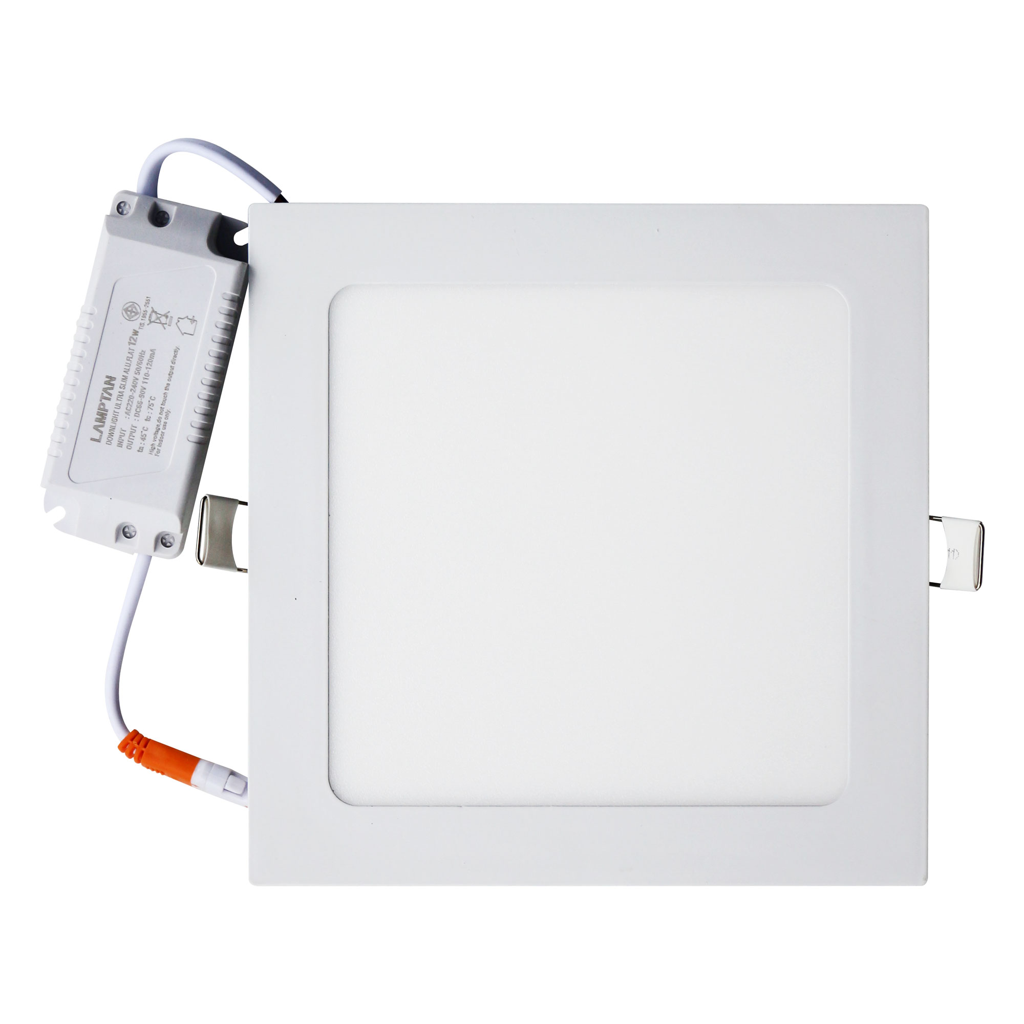 ชื่อสินค้า : โคมดาวน์ไลท์ LED 094/075 12W WW 6" เหลี่ยม ขาว Lamptan Ultra Slim