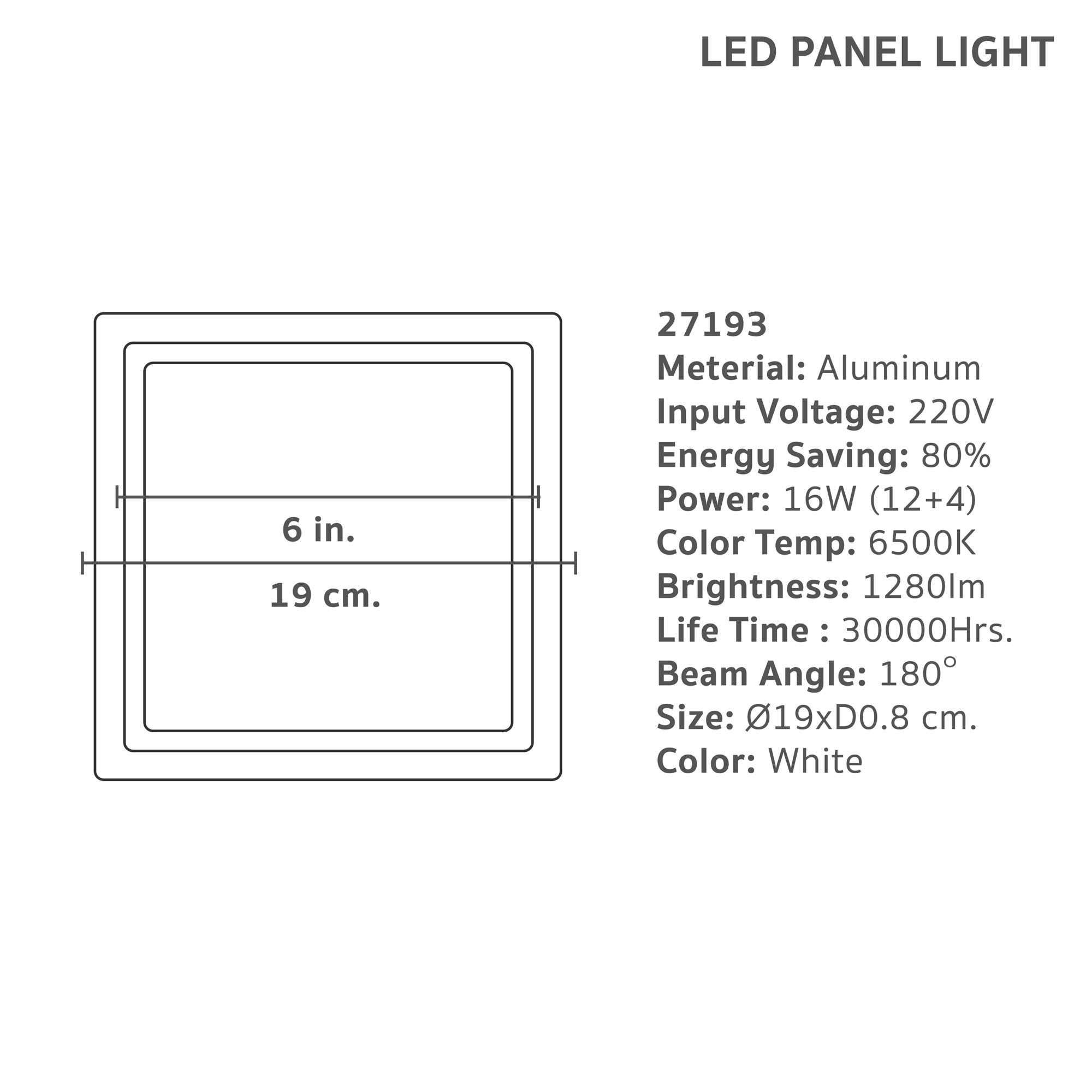 ชื่อสินค้า : โคมดาวน์ไลท์ LED 013/054/2 12+4W DL/BL 6" เหลี่ยม ขาว Bewon