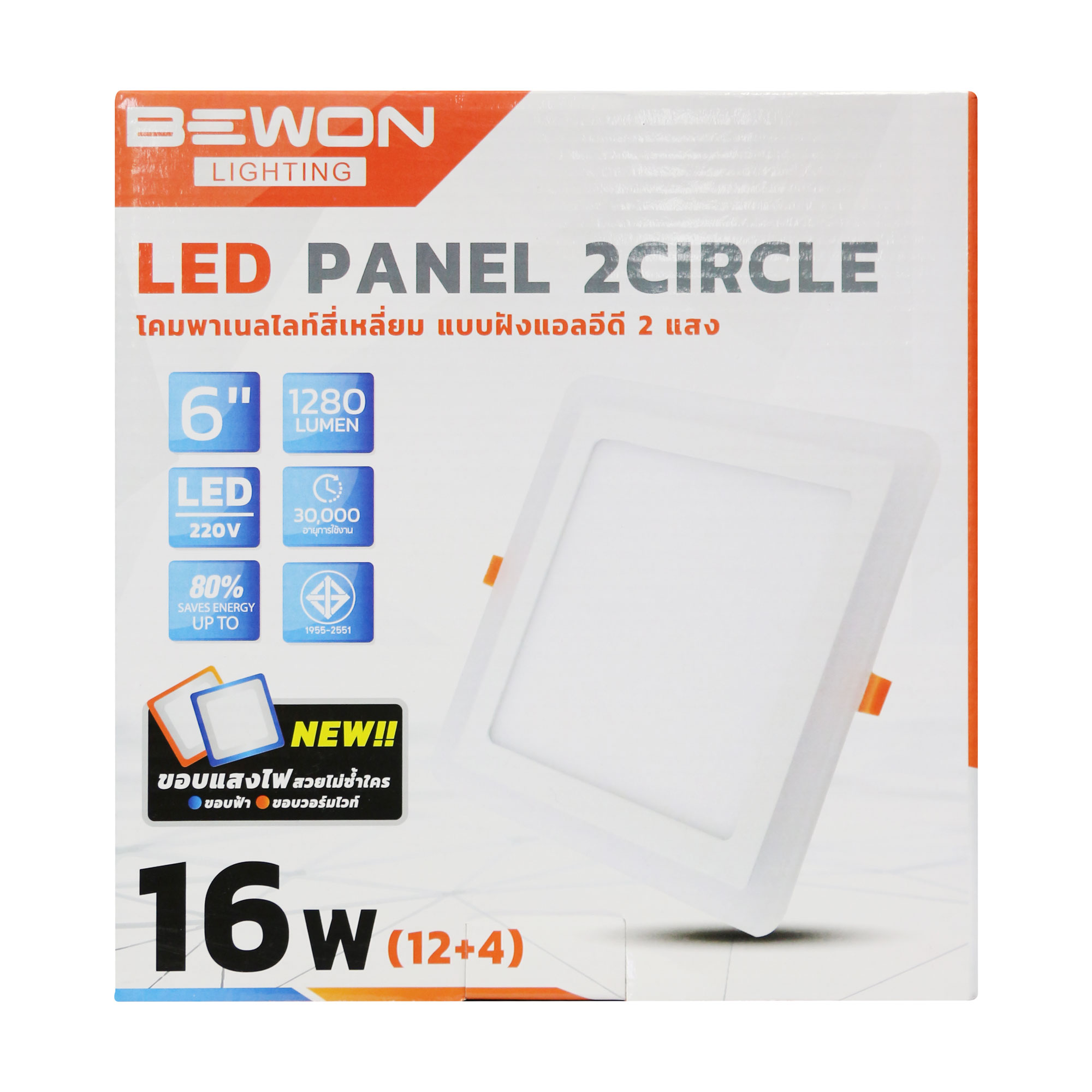 แชทข้อมูลสินค้าโคมดาวน์ไลท์ LED 013/054/2 12+4W DL/BL 6" เหลี่ยม ขาว Bewon