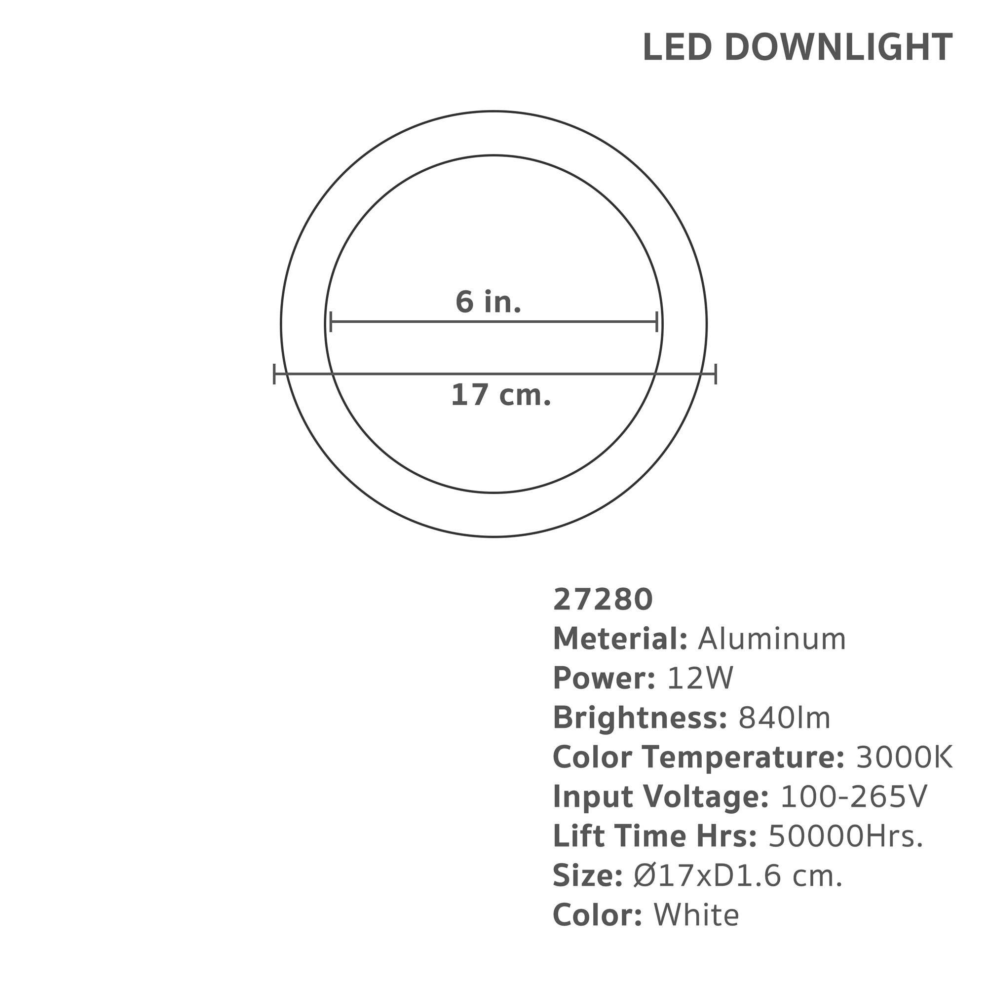 ชื่อสินค้า : โคมดาวน์ไลท์ LED 1730/005/2 12W WW 6" กลม ขาว Npv