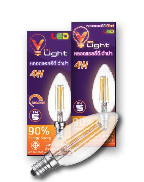 ชื่อสินค้า : หลอดจำปาใส LED E14 วินเทจ 4W WW V Light หรี่ได้