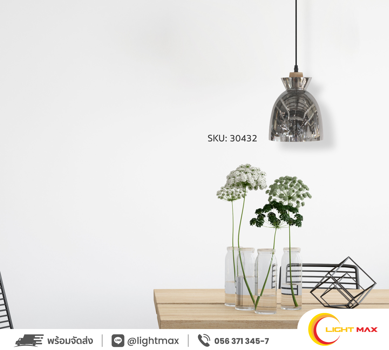 แชทข้อมูลสินค้าโคมห้อย 1044/009 ฝาชีแก้ว เทา 19x22cm. (E27x1)