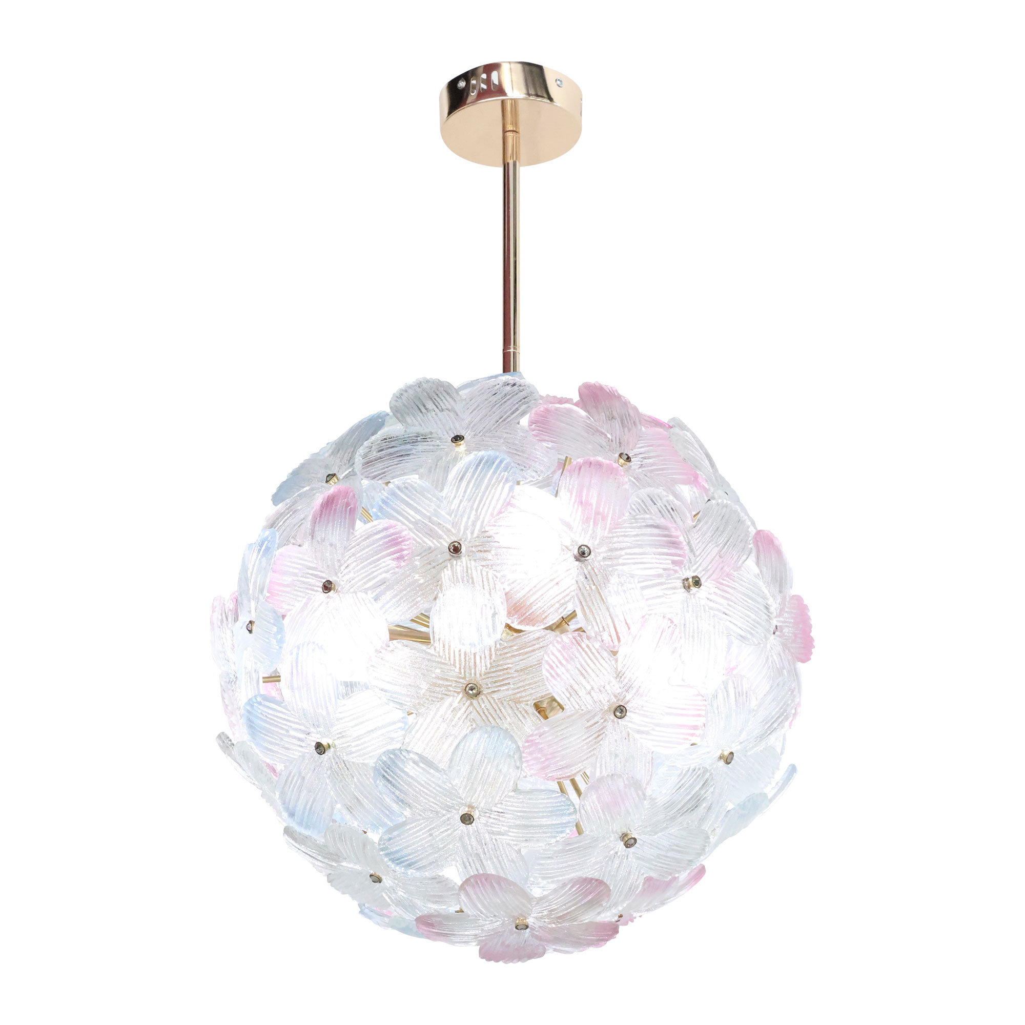 ชื่อสินค้า : โคมช่อ 1049/002 ทรงกลมดอกไม้ สีขาว-ม่วง ก้านทอง ก.40cm. (E14x6)