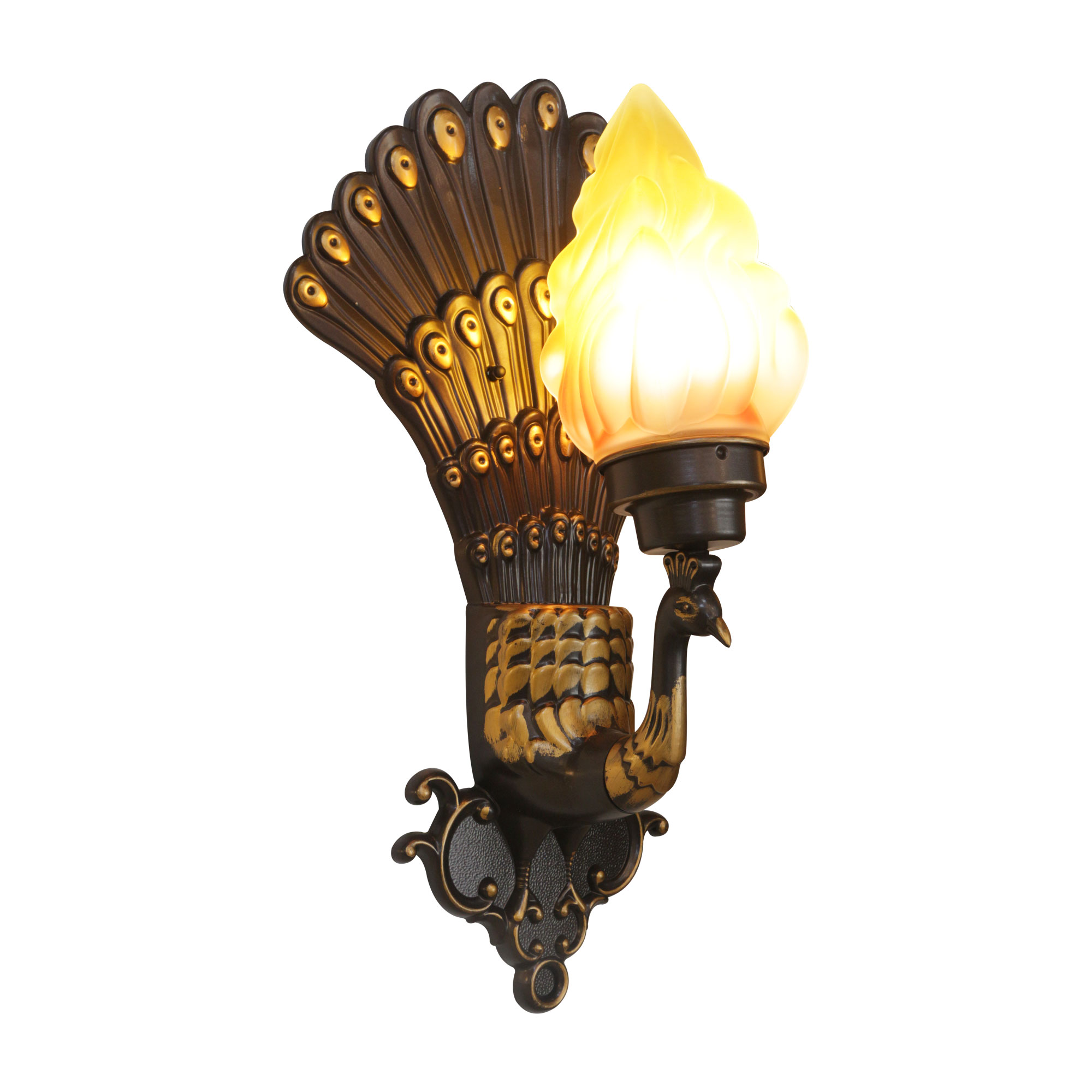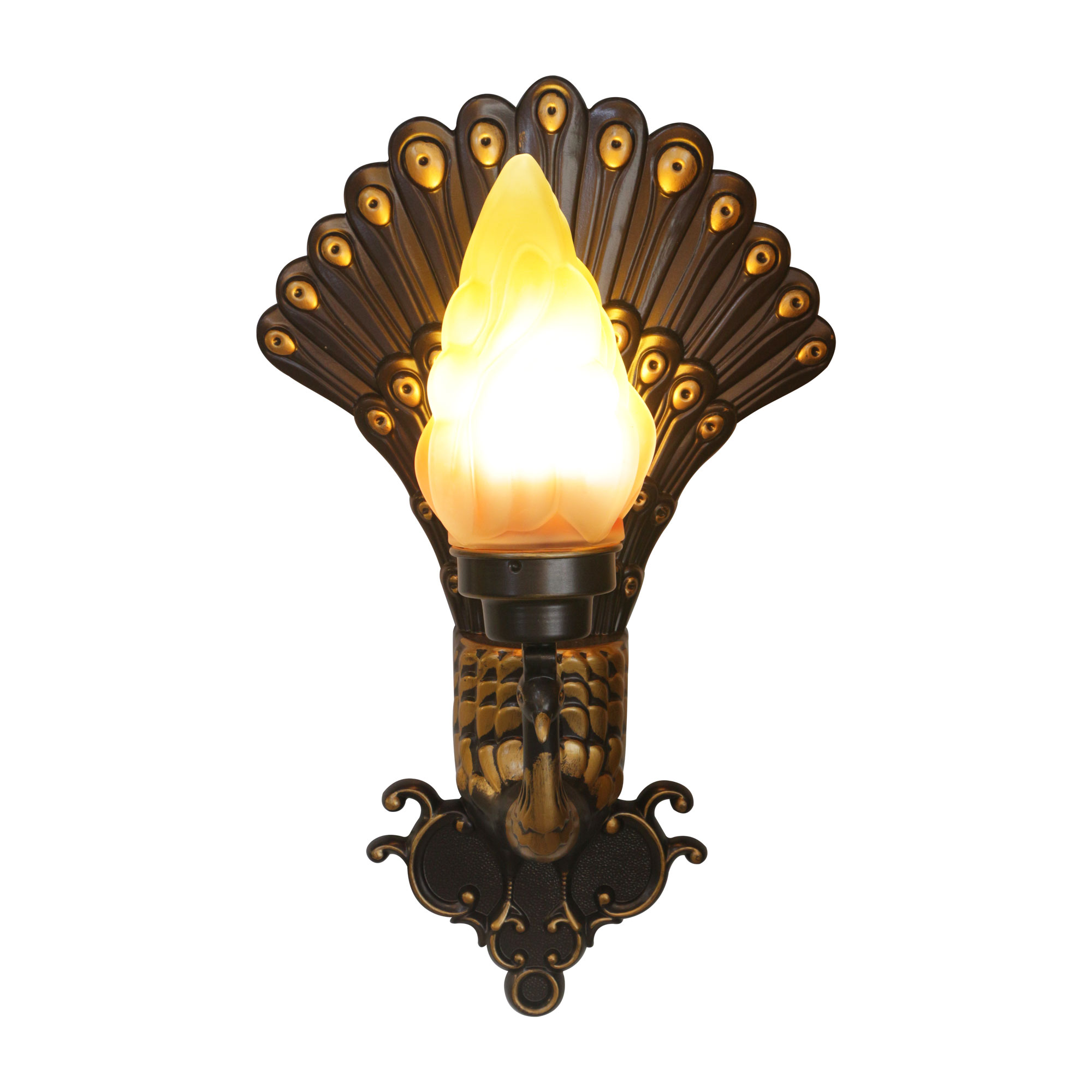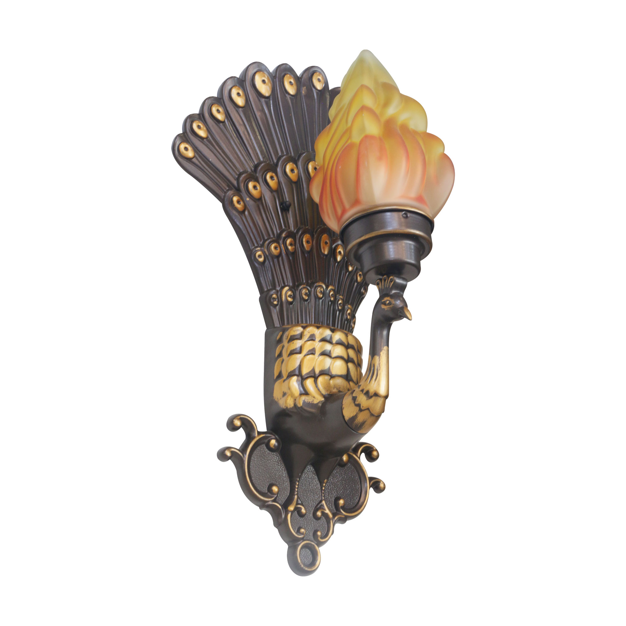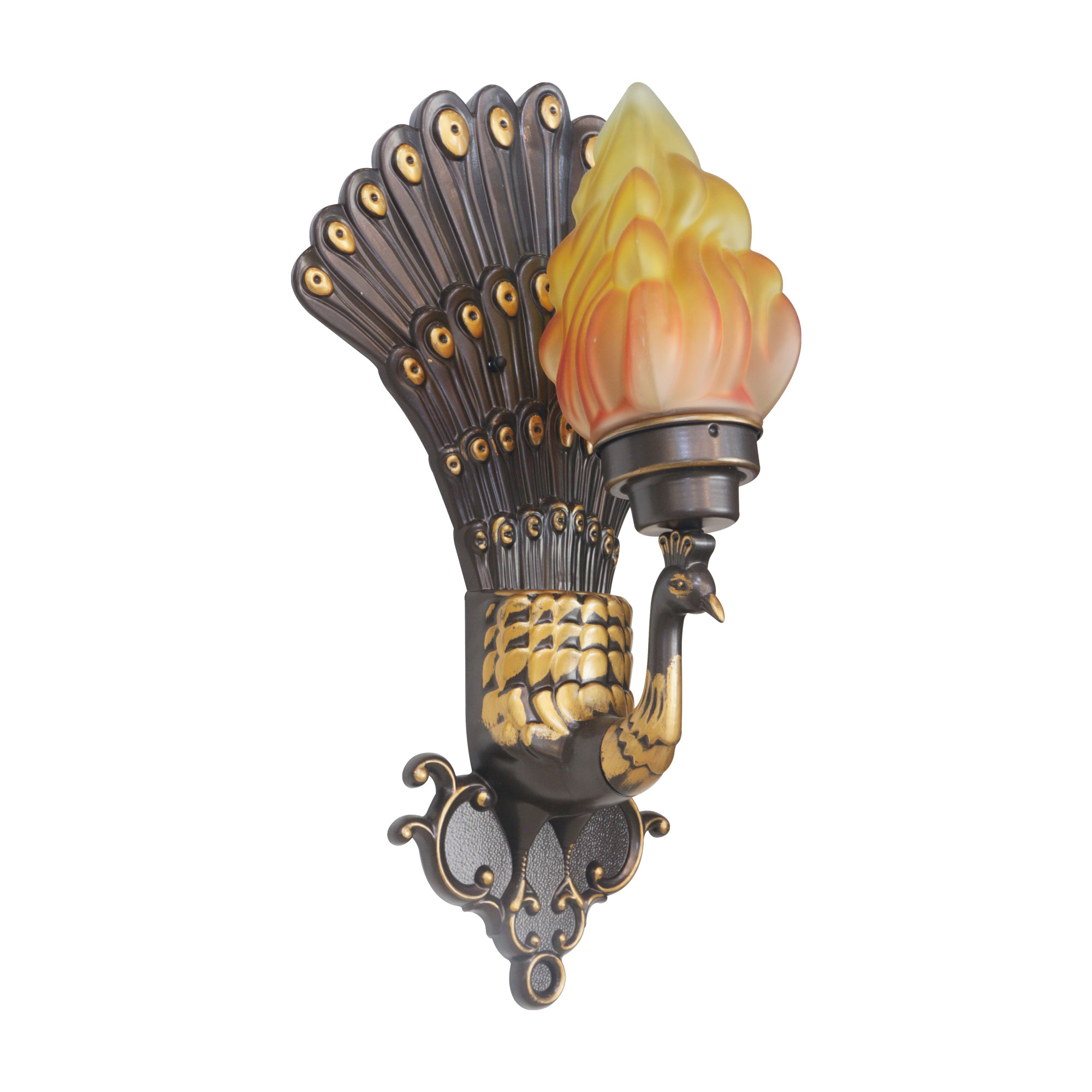 ชื่อสินค้า : โคมกิ่งนอก 1052/008 นกยูง น้ำตาล-ทอง แก้วเปลวไฟ ก.32xย.17xส.53cm. (E27x1)
